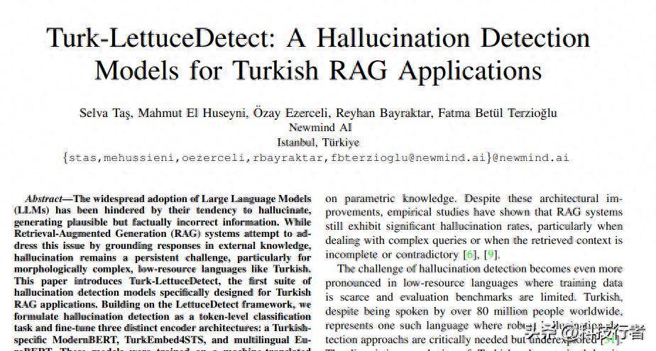 来自土耳其伊斯坦布尔Newmind AI公司的研究团队最近发表了一项突破性研究,专门解决这个问题。这篇题为"Turk-LettuceDetect: A Hallucination Detection Models for Turkish RAG Applications"的论文由Selva Tas、Mahmut El Huseyni、Özay Ezerceli、Reyhan Bayraktar和Fatma Betül Terzioglu共同完成,于2025年9月发表在arXiv预印本平台上,论文编号为arXiv:2509.17671v1。